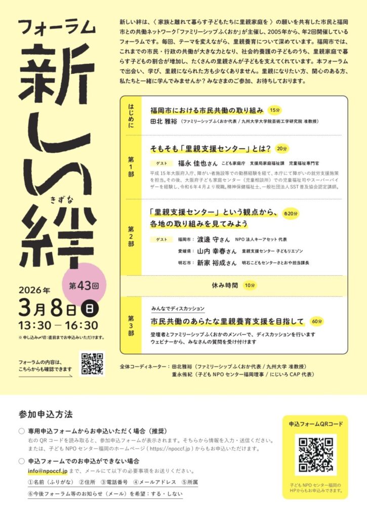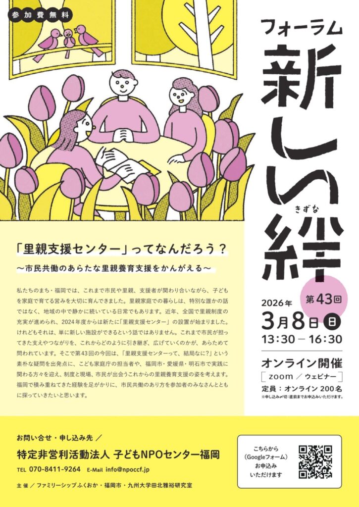 子どもNPOセンター福岡から、「フォーラム新しい絆」のご案内が届きました。